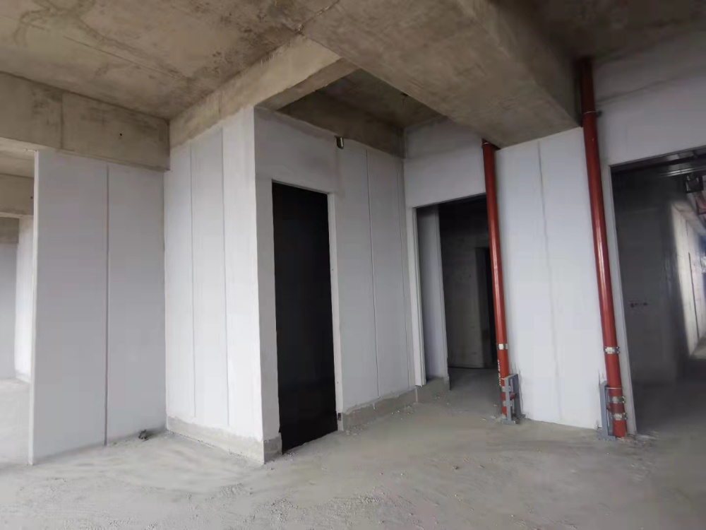 清理隔墻板安裝部位,剔除頂棚、墻面以及柱面凸出的砂漿塊等雜物,用清水沖洗上部的浮灰和砂子,并晾干。